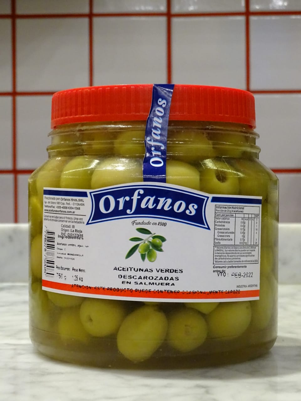 TE ACERCAMOS LAS MAS RICAS ACEITUNAS PARA TU PICADA, EN UNA ENVASE PRESENTACION PARA COMPARTIR DE 750GS. ACEITUNAS GRANDES CARNOSAS Y SIN CAROZO.