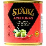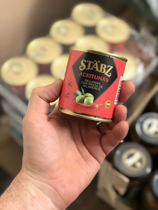 Las aceitunas rellenas son uno de los más grandes inventos españoles. Stäbz desarrolló una gama de productos españoles de la más alta calidad, incluyendo aceitunas rellenas con salmón, anchoa, alcaparra, atún, limón, jalapeño y pimiento suave.