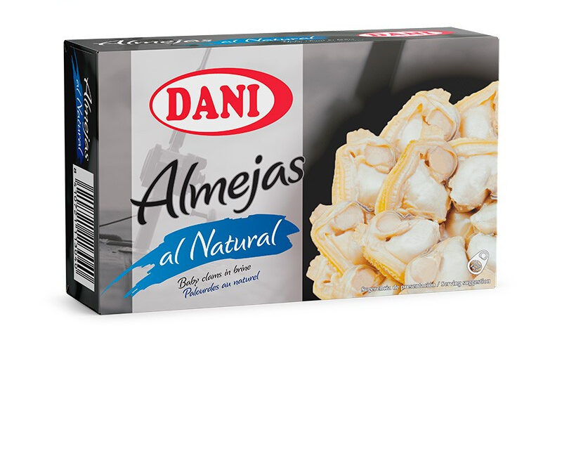 Las almejas blancas al natural son un producto de marisco en conserva, que se presenta con las almejas limpias y cocidas en su propio jugo, sin añadir ningún tipo de aditivos o conservantes.