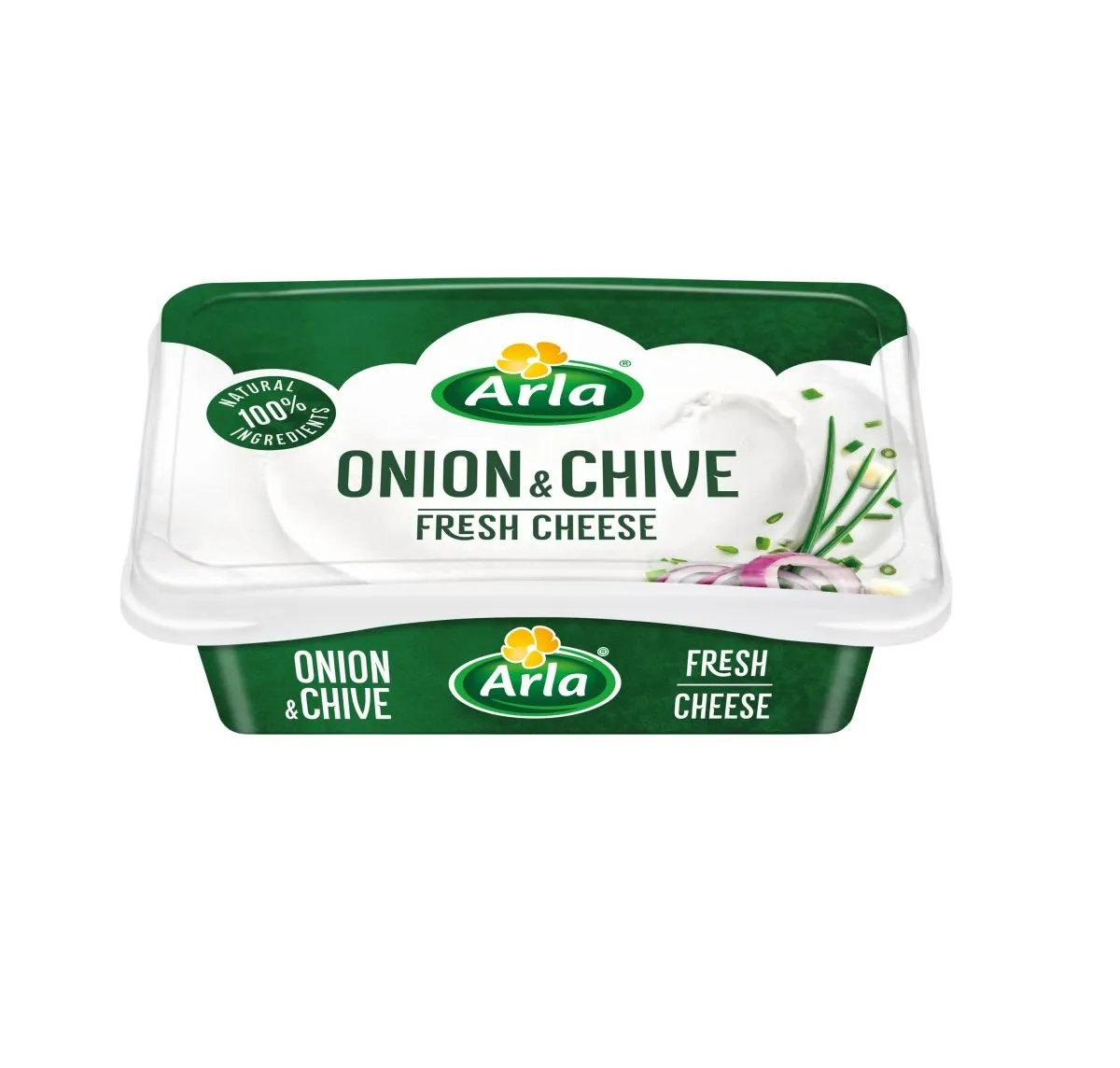 Queso crema blanco con cebolla y cebollín.
