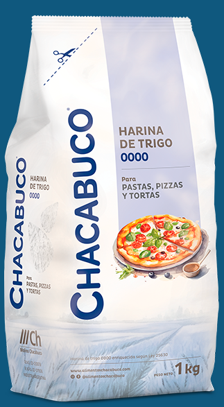 La harina Chacabuco® 0000 es obtenida a partir de la cuidadosa selección de nuestros mejores trigos. Es el producto natural más indicado para la elaboración de pizzas, pastas y pastelería. Su refinada calidad la hace ideal para preparar toda clase de platos que requieran una harina pensada especialmente para la alta cocina.