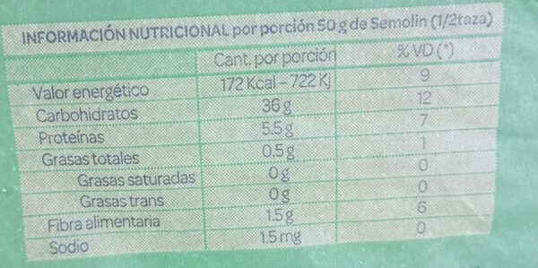 SEMOLÍN BOLSA X 25KG IDEAL PARA FABRICA DE PASTAS Y PASTAS CASERAS.