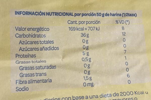Harina de trigo 0000 sin enriquecer. Aplicación: tapas de empanadas, pasteles, pascualinas y pastas frescas.