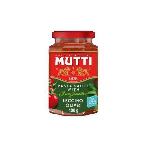 Vivo, sabroso y con trozos. Tomate cherry y Aceitunas Leccino. Las salsas para pasta Mutti utilizan sólo tomates de verano 100% italianos de la más alta calidad, recogidos en su punto máximo de madurez. Elegimos cuidadosamente la variedad de tomate específica que mejor combina con nuestros ingredientes italianos únicos. Aquí, el animado tomate cherry se combina con aceitunas Leccino, una variedad italiana de aceituna considerada una de las variedades italianas más rústicas cultivadas en las regiones de Umbría y Toscana. Las aceitunas se mantienen enteras para obtener una textura con trozos.