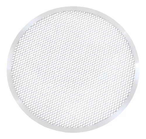 Rejilla de aluminio, malla llana. La rejilla ofrece la ventaja de proteger la masa de la superficie radiante del horno durante la cocción y evita el abizcochado en el caso de cocción combinada, o bien, cuando la pizza se hornea en dos tiempos. La cocción sobre rejilla es una alternativa de cocción más rápida que la realizada en un molde, permitiendo, además, una mayor irradiación directa del calor y una cocción más rápida.
