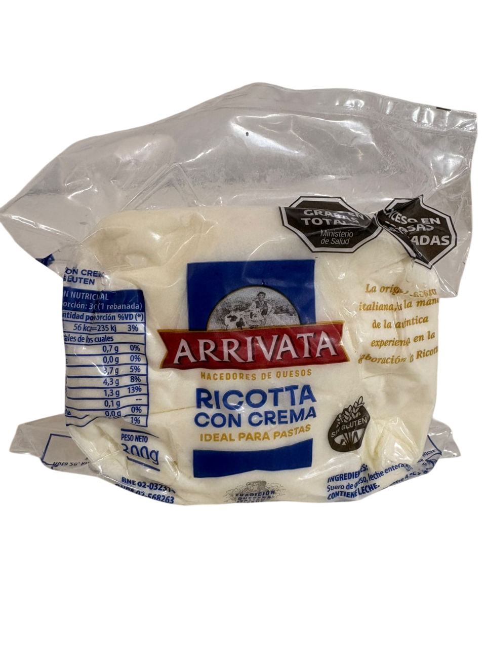 deal para rellenos de pastas, tartas y tortas. Tambien se puede combinar con cafe y miel, o simplemente para una picada condimentada con aceite de oliva. Queso blando de origen italiano.