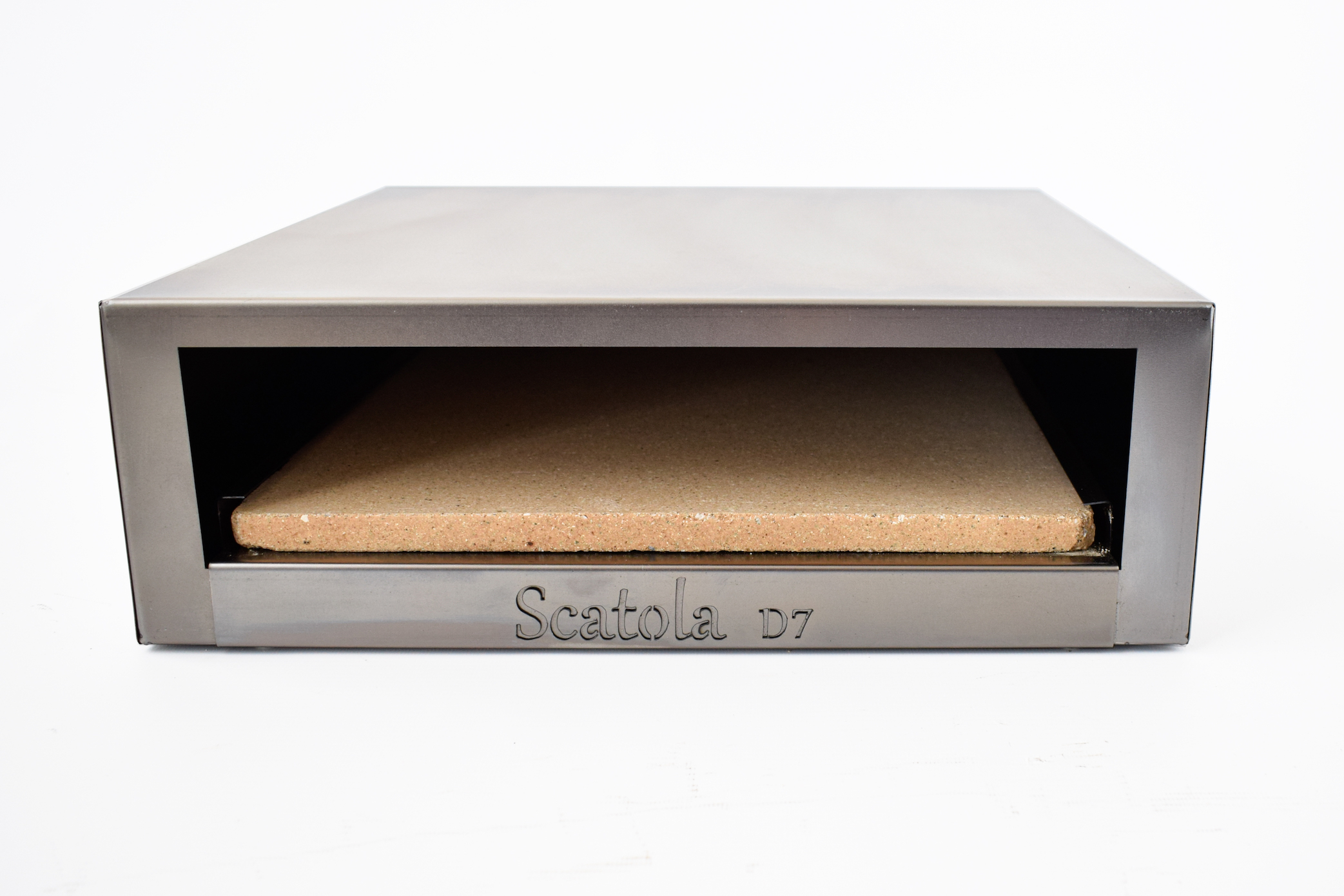 Consiste en un horno portátil con fuente de calor externa y calentamiento por convección, pensado para ser usado en cualquier cocina estándar. Se puede lograr temperaturas de entre 400° y 450° simplemente encendiendo las 4 hornallas de la cocina a máximo. La temperatura puede ser regulada bajando a mínimo las hornallas si se requiere para determinadas comidas. Posee en su interior una piedra refractaria de 33 cm x 37 cm x 1.5 cm de espesor. La piedra es removible y puede ser cambiada cuantas veces sea necesario.