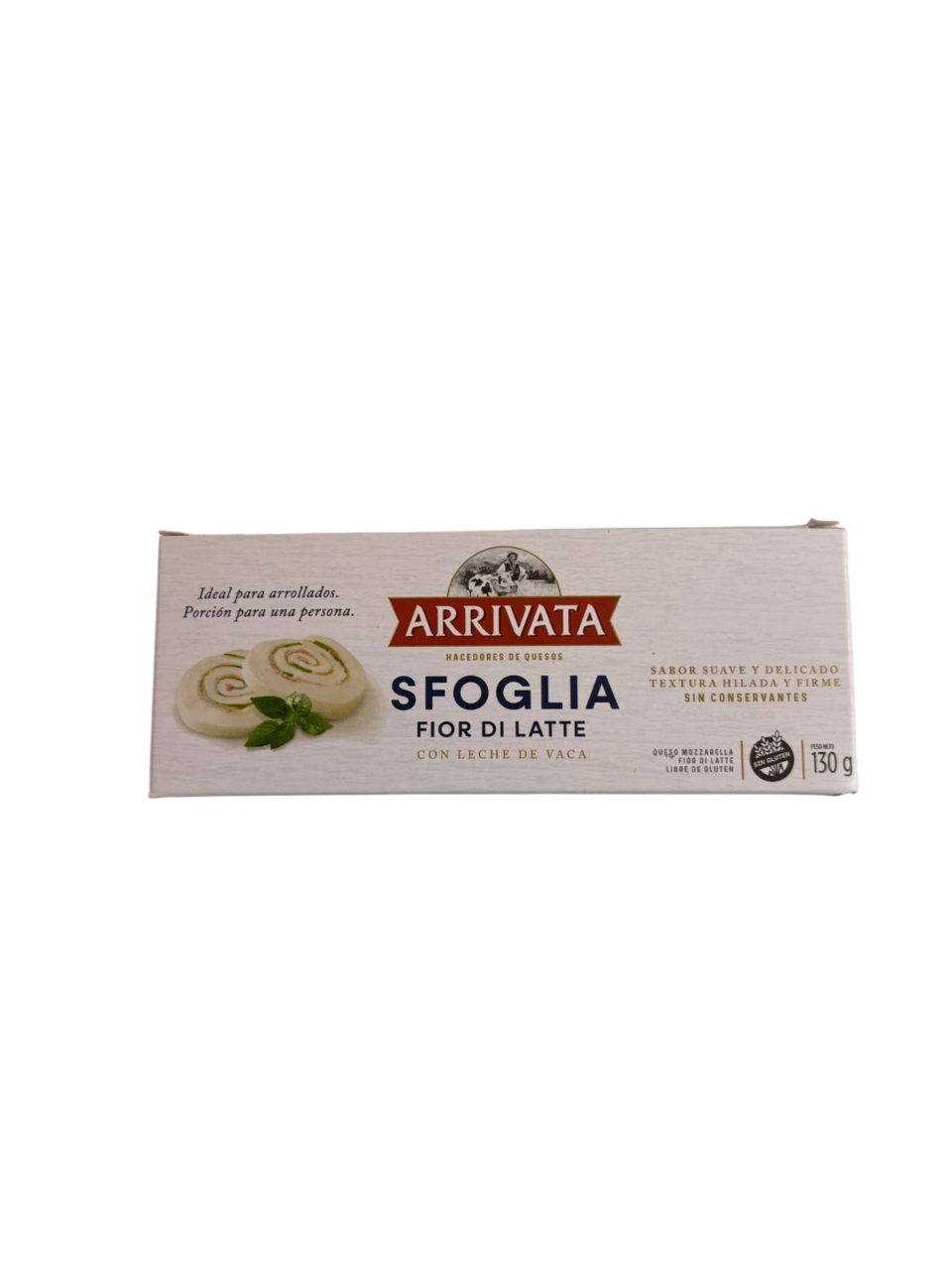 La sfoglia de Arrivata es una fina lámina de queso mozzarella fior di latte fresco, ideal para rellenar, enrollar y cortar en porciones, perfecta como entrada o plato frío. Es un producto lácteo italiano (con «sfoglia» significando «hoja» o «lámina») que se destaca por su sabor suave y textura cremosa