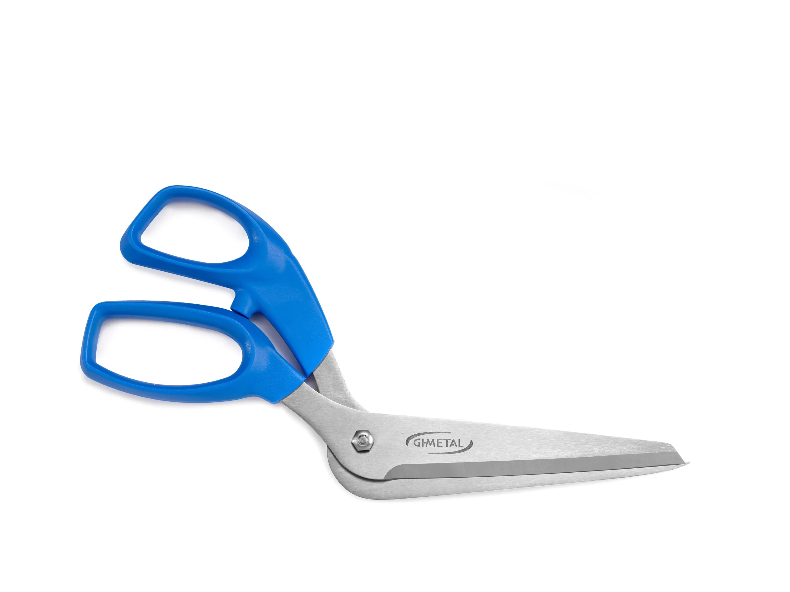 Tijeras para cortar pizza, con los bordes desplazados hacia arriba y redondeados para no interferir con el borde del molde. Fabricado en acero inoxidable y mango de polímero de alta resistencia. Hoja 12 cm.
